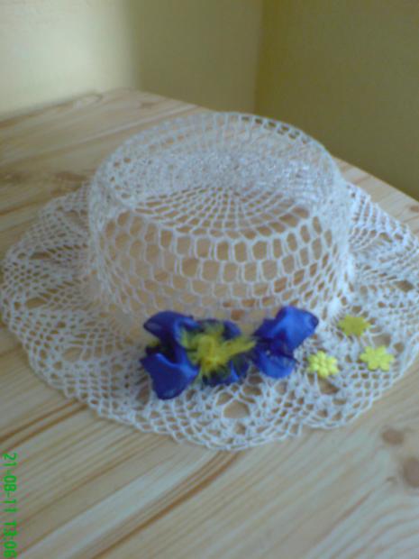 Háčkovaný klobouk k dekoraci nebo lze i nosit