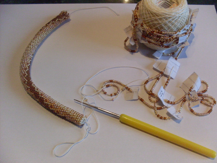 Háčkovaná dutinka z 12 korálků v jedné kruhové řadě. Nejmenší rokajl zn. Precioza