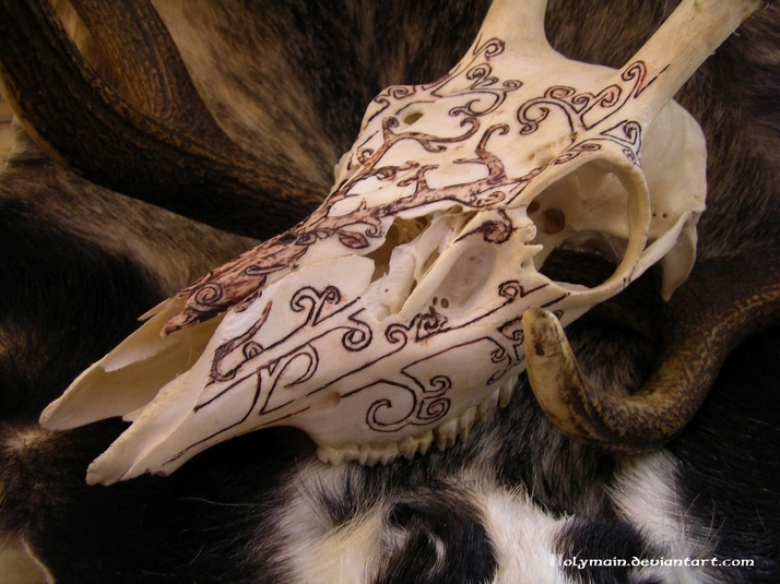 Lebka jelena evropského, tzv. špidláka, kterýmu se nevětví paroží. Tyhle kusy musí být v zájmu bezpečnosti ostatních kusů zastřeleni. Mě když se tahle lebečka dostala do rukou, tak první co mě napadlo bylo vyrýt mu pořádné proží.
