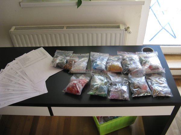 Zatím moje největší objednávka o několika stech položkách, celkem je to 4,2 kg korálků a několik hodin práce na obou stranách. A leží na novém pracovním stole. Tak tady bude moje království.