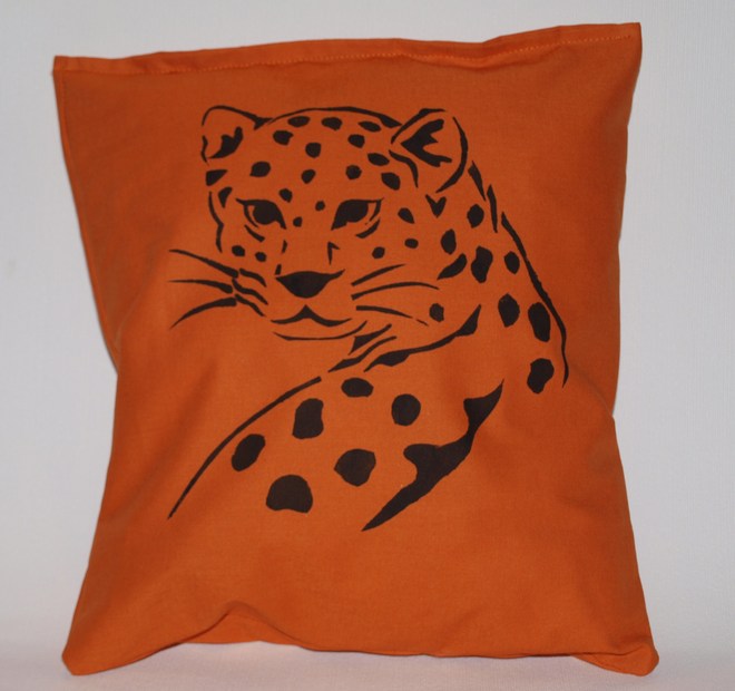 polštář plněný dutým vláknem/ molitanovou drtí. Potisk barvou na textil, možné prát v pračce na 4O°C z rubové strany.