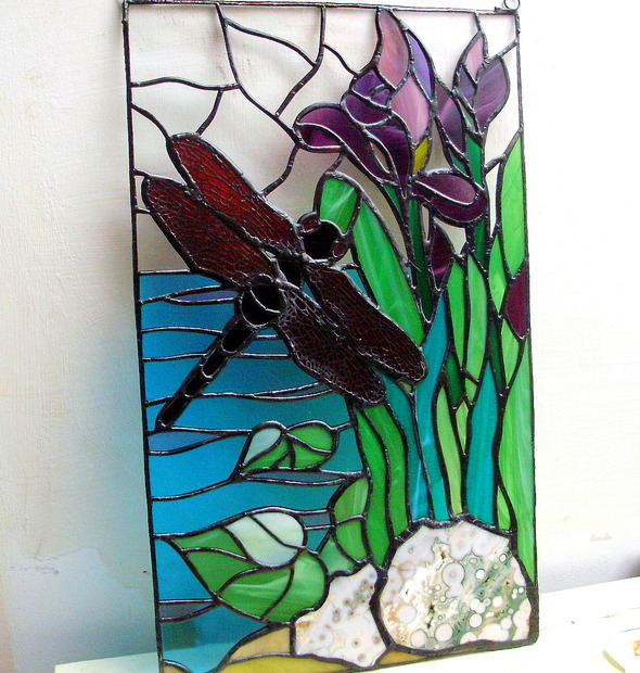 Obraz vážky nad hladinou, materiál sklo, minerál, velikost 30x50 cm