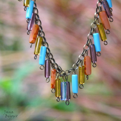 Skleněné třásně..neboli ofiny jak se tu říká tu teď letí.. dělají se na oblěčení, kožených doplňcích ..v mém případě je to na řetízku.