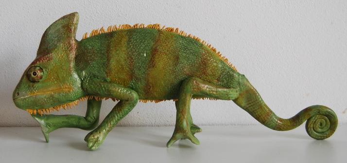 Model chameleona vytvořený z polymerové hmoty do klubu Fimo-tematická tvorba na téma 3D modely :).