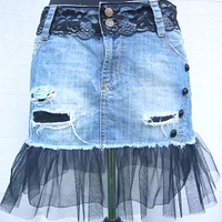 Painted denim skirt