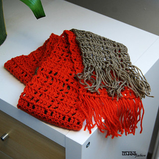 Klasická šála háčkovaná vzdušným vzorem ze syntetické příze. Na koncích ozdobená třásněmi. Díky svému klasickému provedení i barevnosti je šála vhodným doplňkem