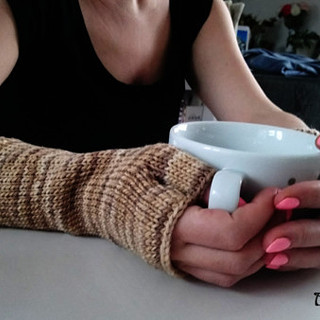 Pletené návleky s palcem se vzorem vyplétané šachovnice z měkoučké a moc příjemné příze s podílem vlny merino. Jsou teplé a báječně se přizpůsobí tvaru ruky.
